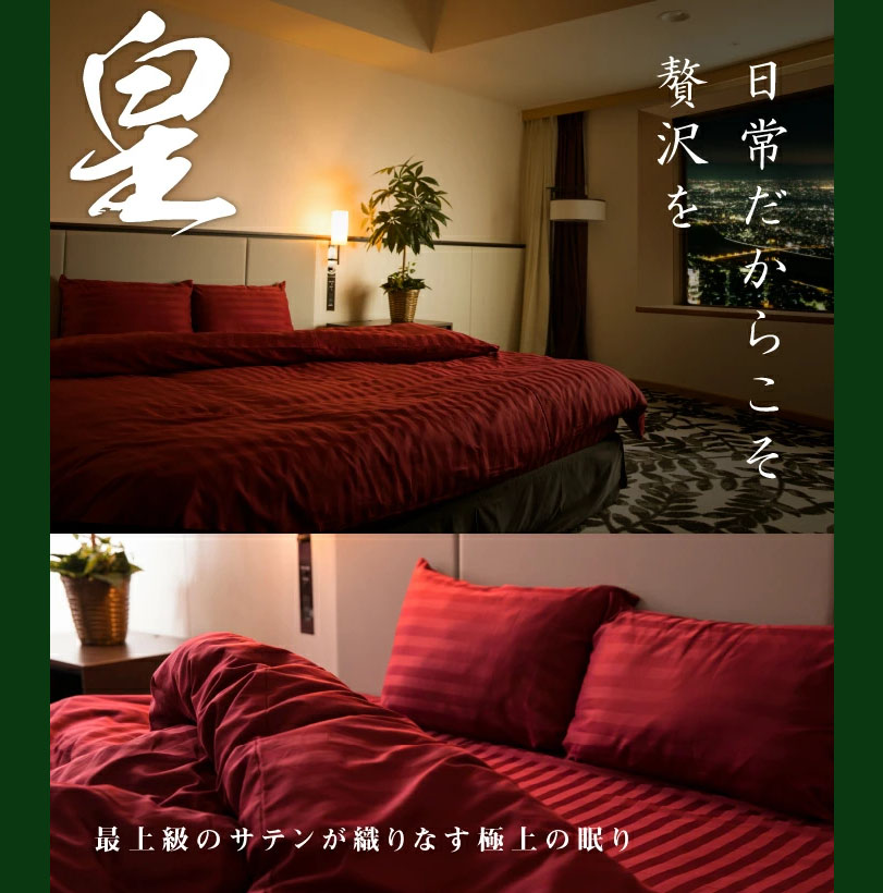 綿100%、高密度織で滑らかな・高級な光沢のあるサテン織の布団カバー・枕カバー…など、品質とファッション性の高い商品をそろえています。